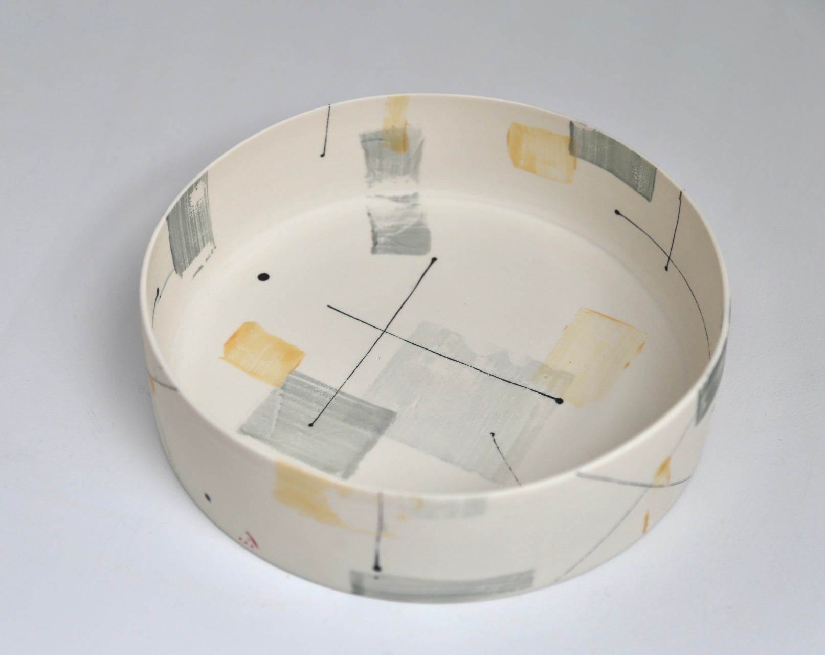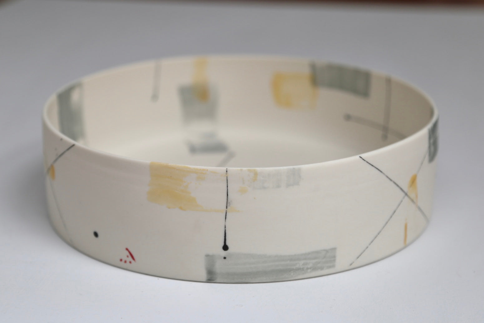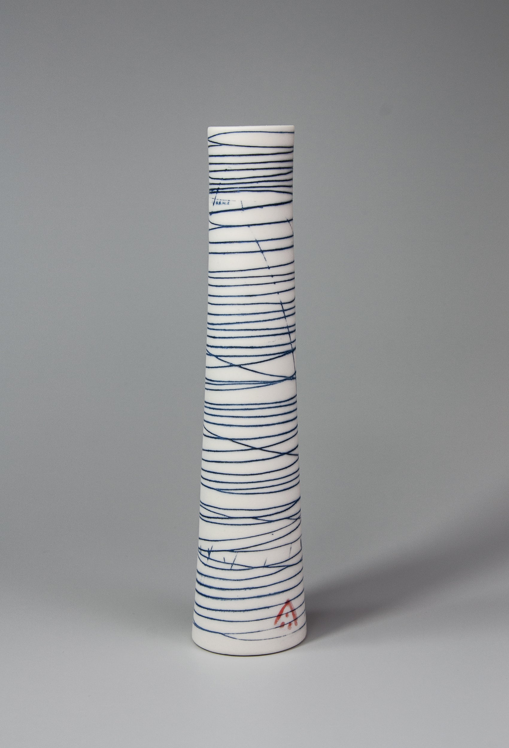 Ali Tomlin’s work is a collection of thrown, elegant, porcelain forms which form a canvas for her colourful, painterly and graphic marks.