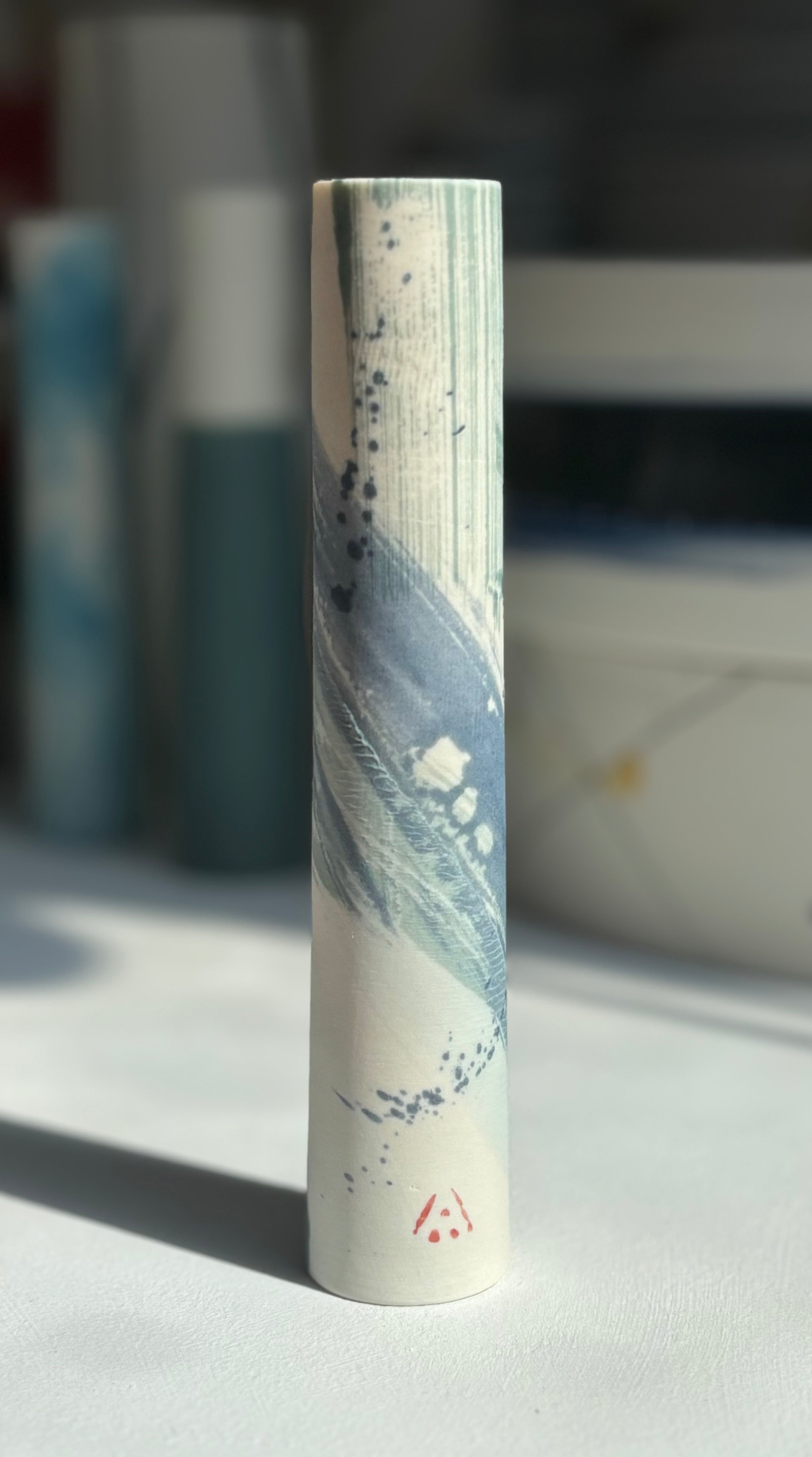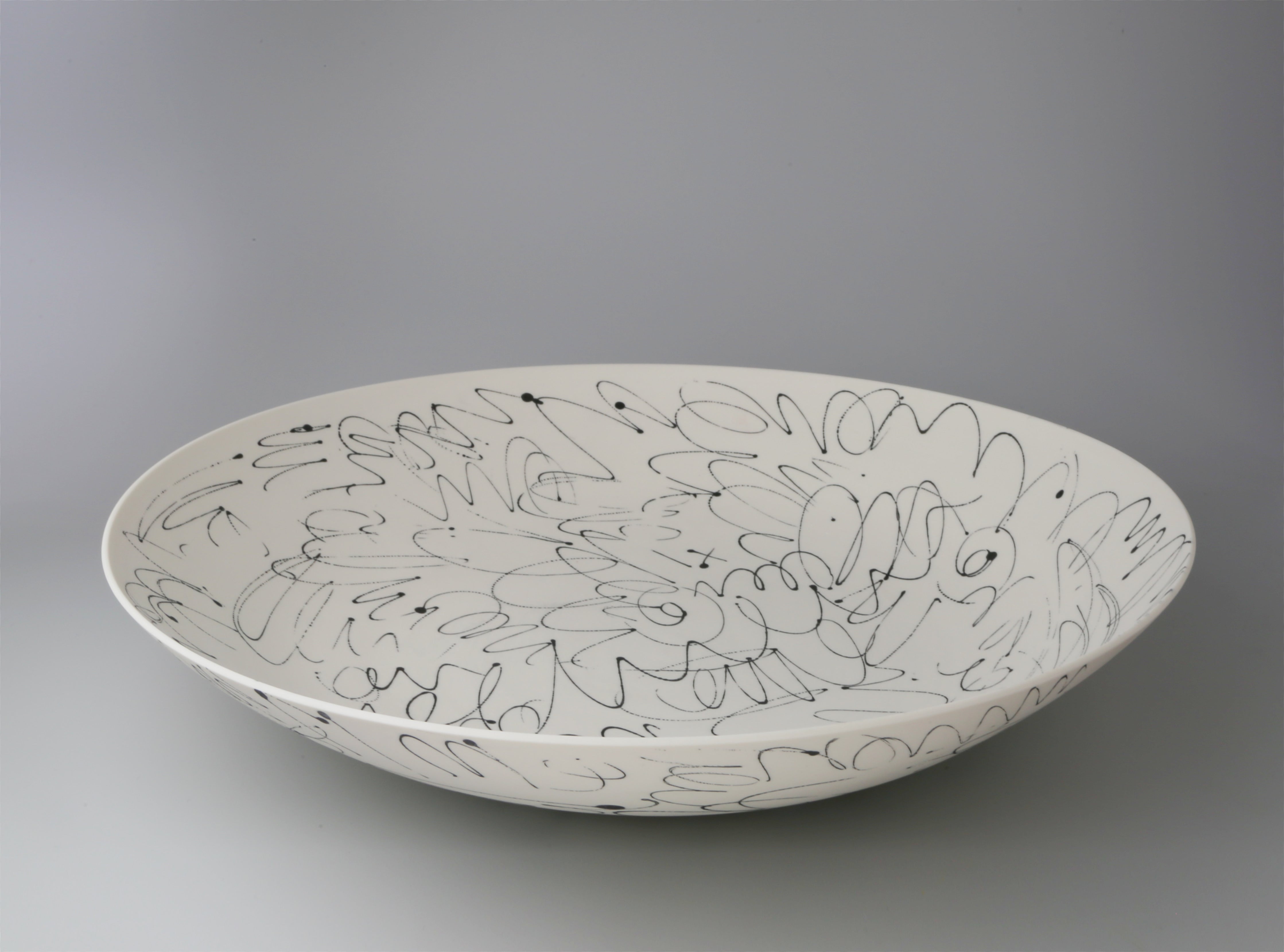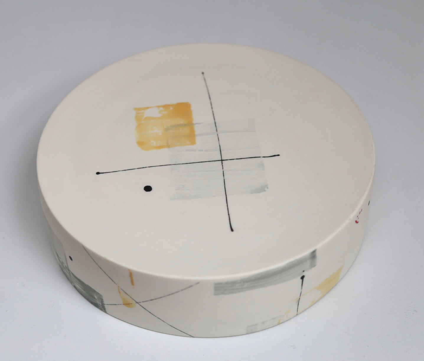 Ali Tomlin’s work is a collection of thrown, elegant, porcelain forms which form a canvas for her colourful, painterly and graphic marks.