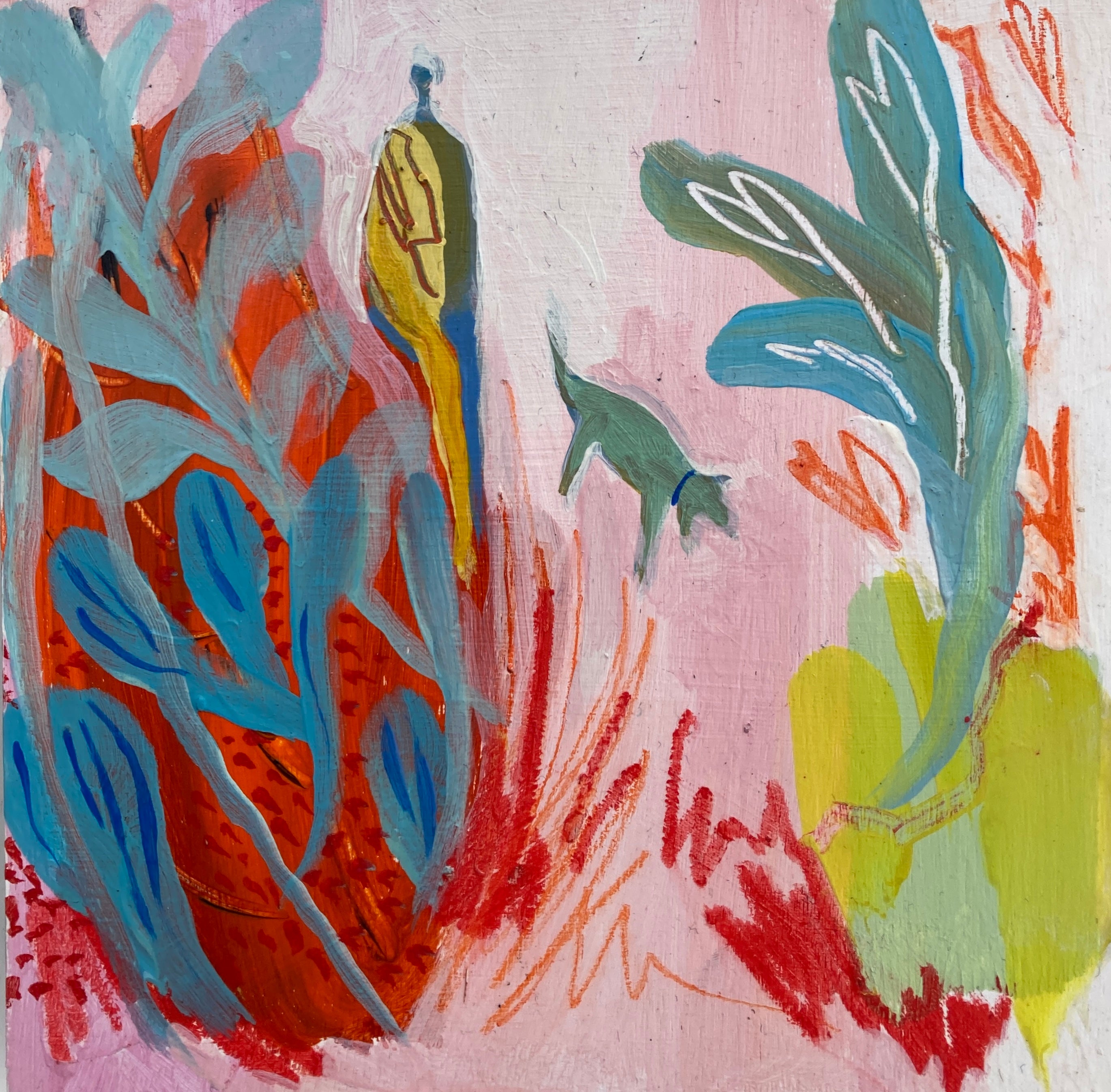 Astrig is a British painter based in Frome, Somerset working in acrylics and mixed media. She has a playful narrative style which includes a confident use of colour and composition.