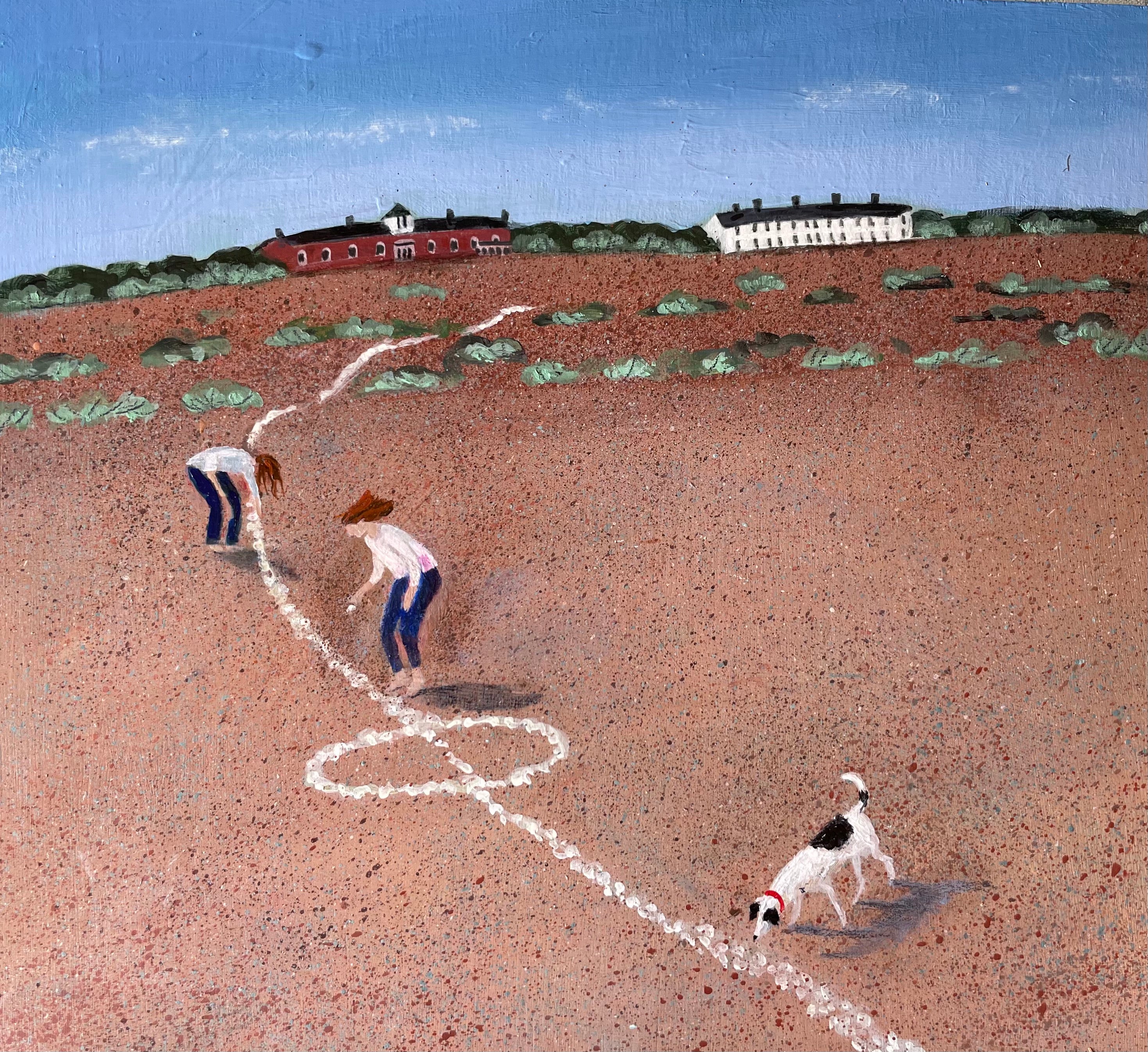 Originating from the North East of England, she now lives in the coastal marshlands of Essex, painting from her studio, a stone’s throw from the river which washes in and out with the tide, where the sea and land merge in mud flats, tidal creeks, and flooded fields providing a continuous backdrop to fleeting moments.