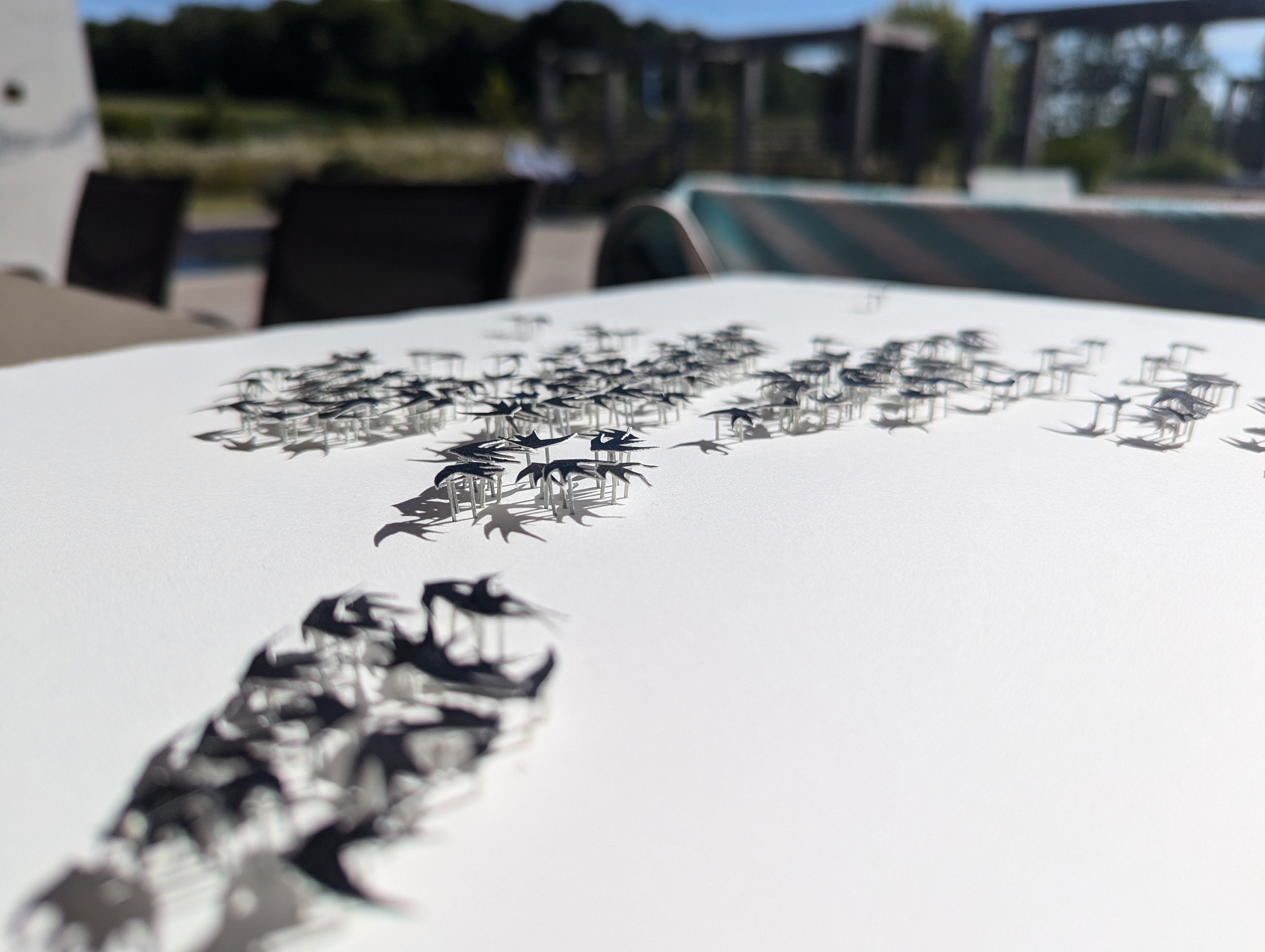 Hand-cut swallows 85 x 65 x 3 cm.