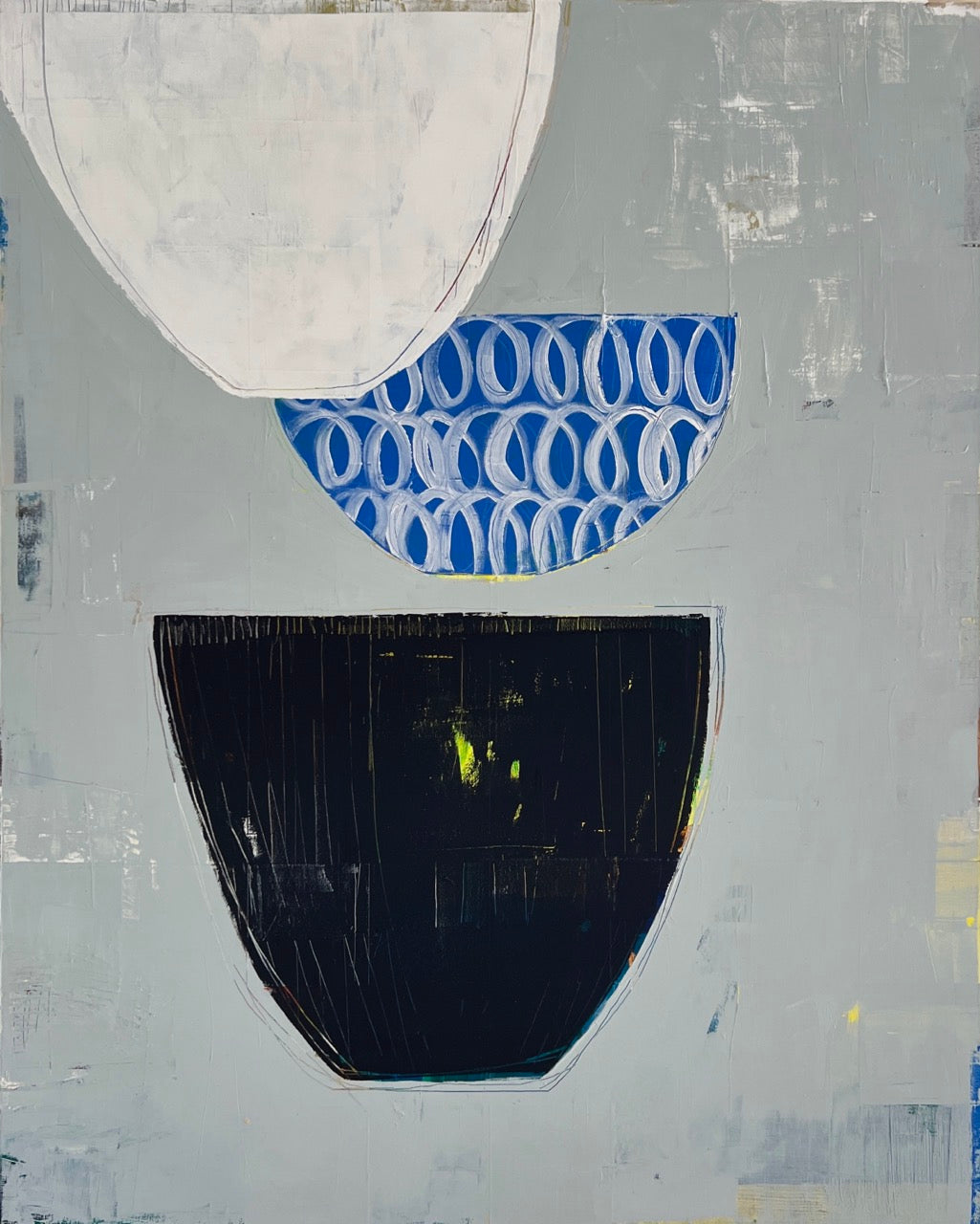 Gill Edwards is a painter, with a long career as a textile designer, and is inspired by the beauty of domestic ceramics- the small objects that share our life stories.
