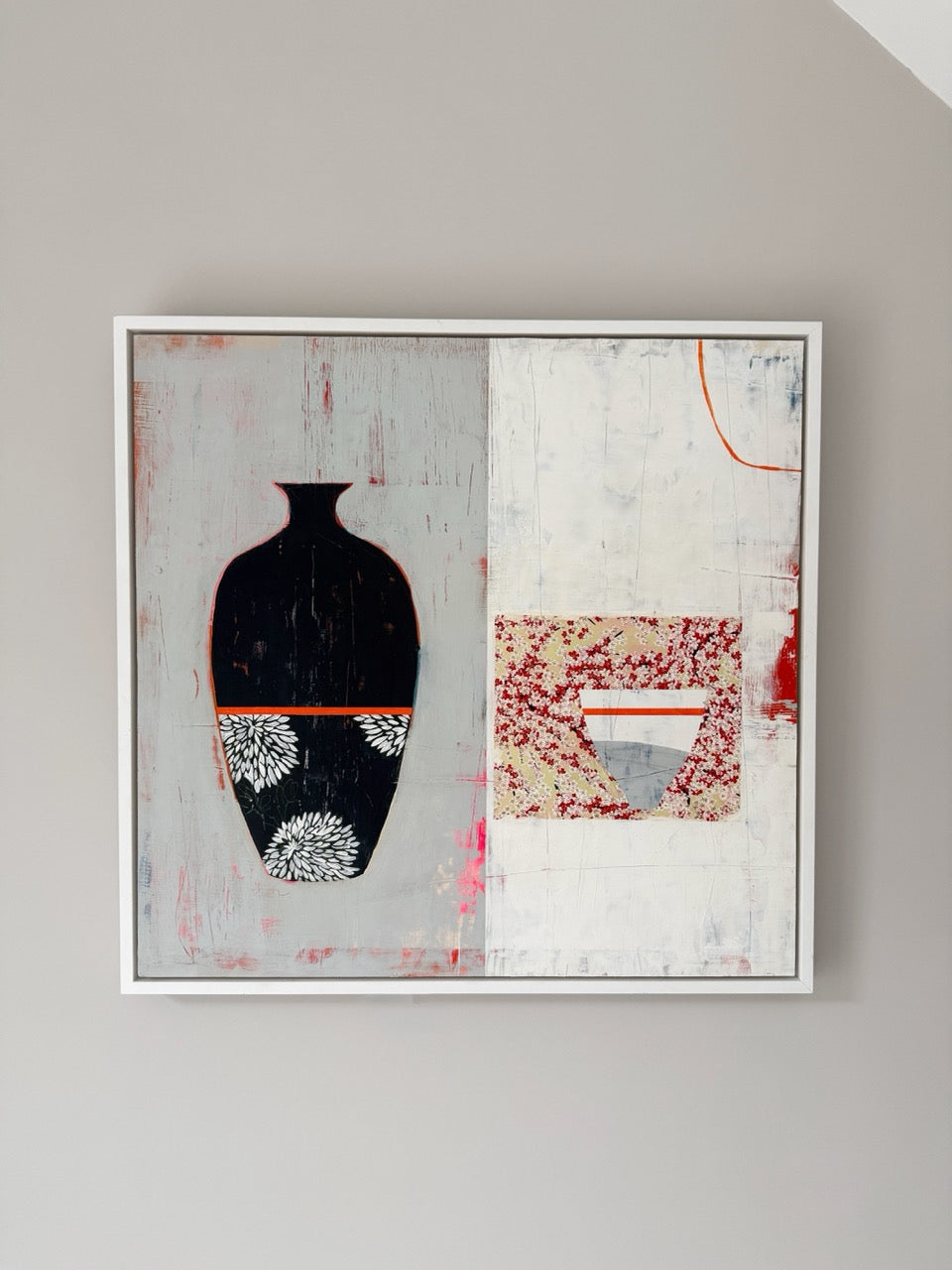 Focussing on shapes, her discerning eyes gently mask certain areas of a painting, letting only the most beautiful parts stand out and shine: a poetic dance between objects and space.