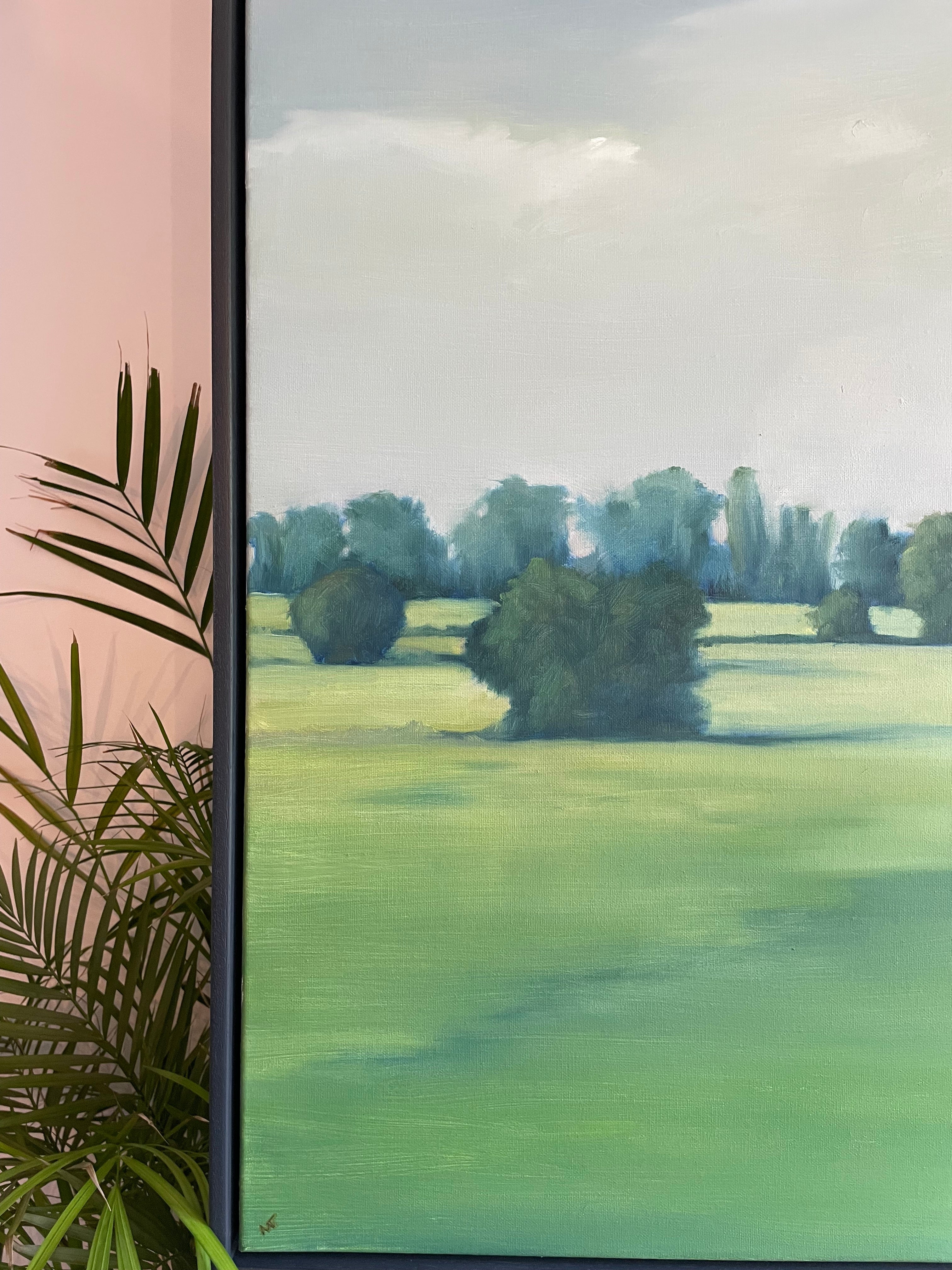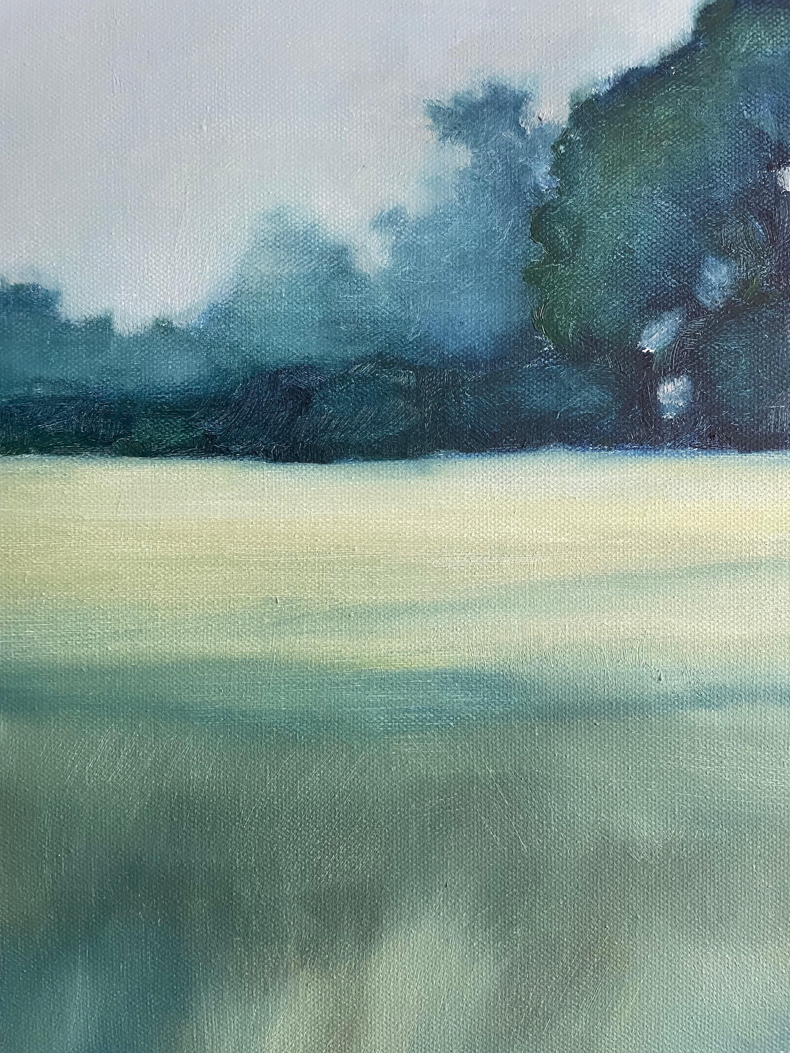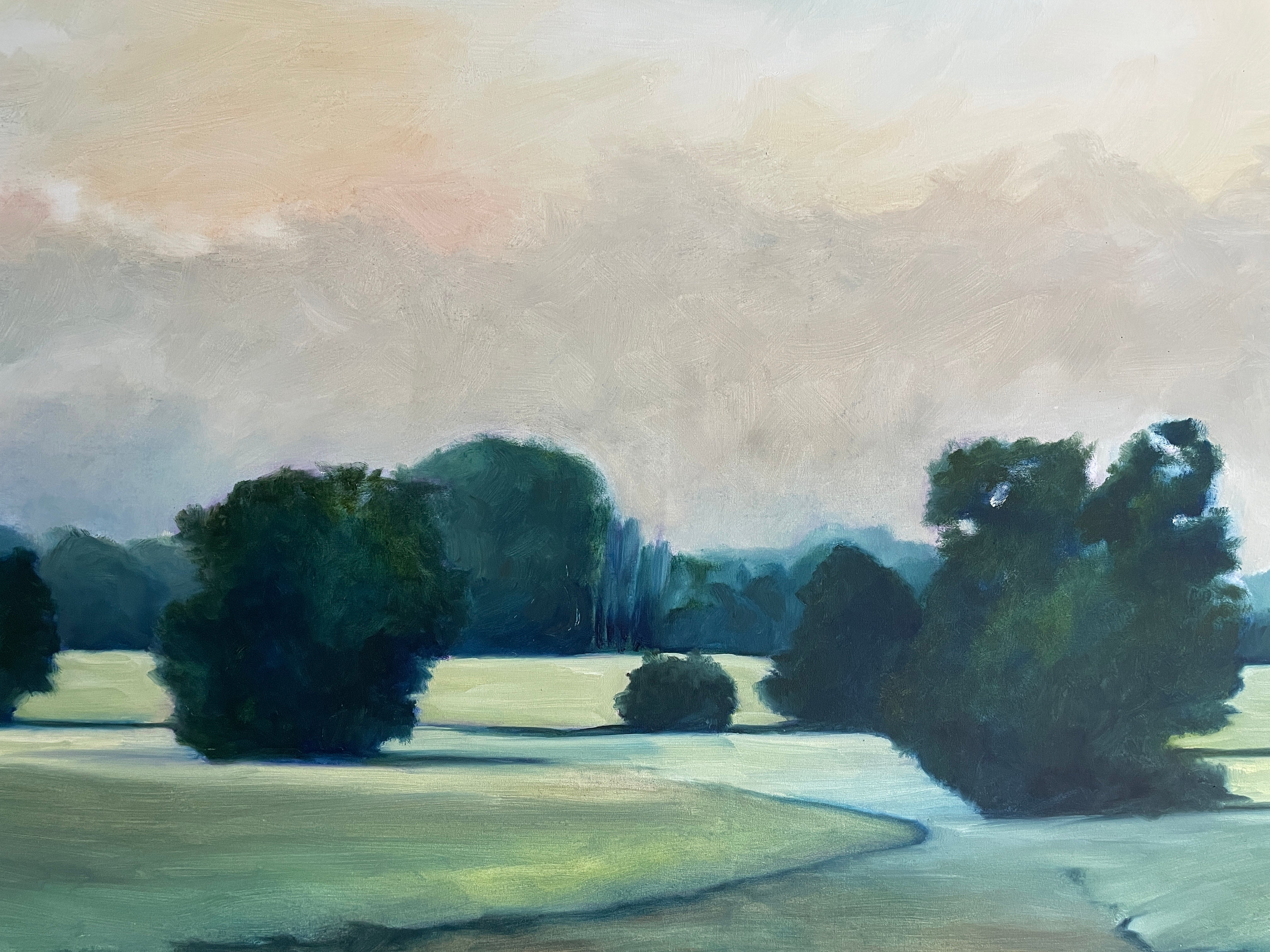 Madeleine initially captures the sense of place in a landscape through traditional techniques en plein air on small board, in oil. On returning to her studio, on the Essex / Suffolk border, she creates large scale canvases that aim to give the viewer a moment of calm and solitude and a sense of living in the landscape.