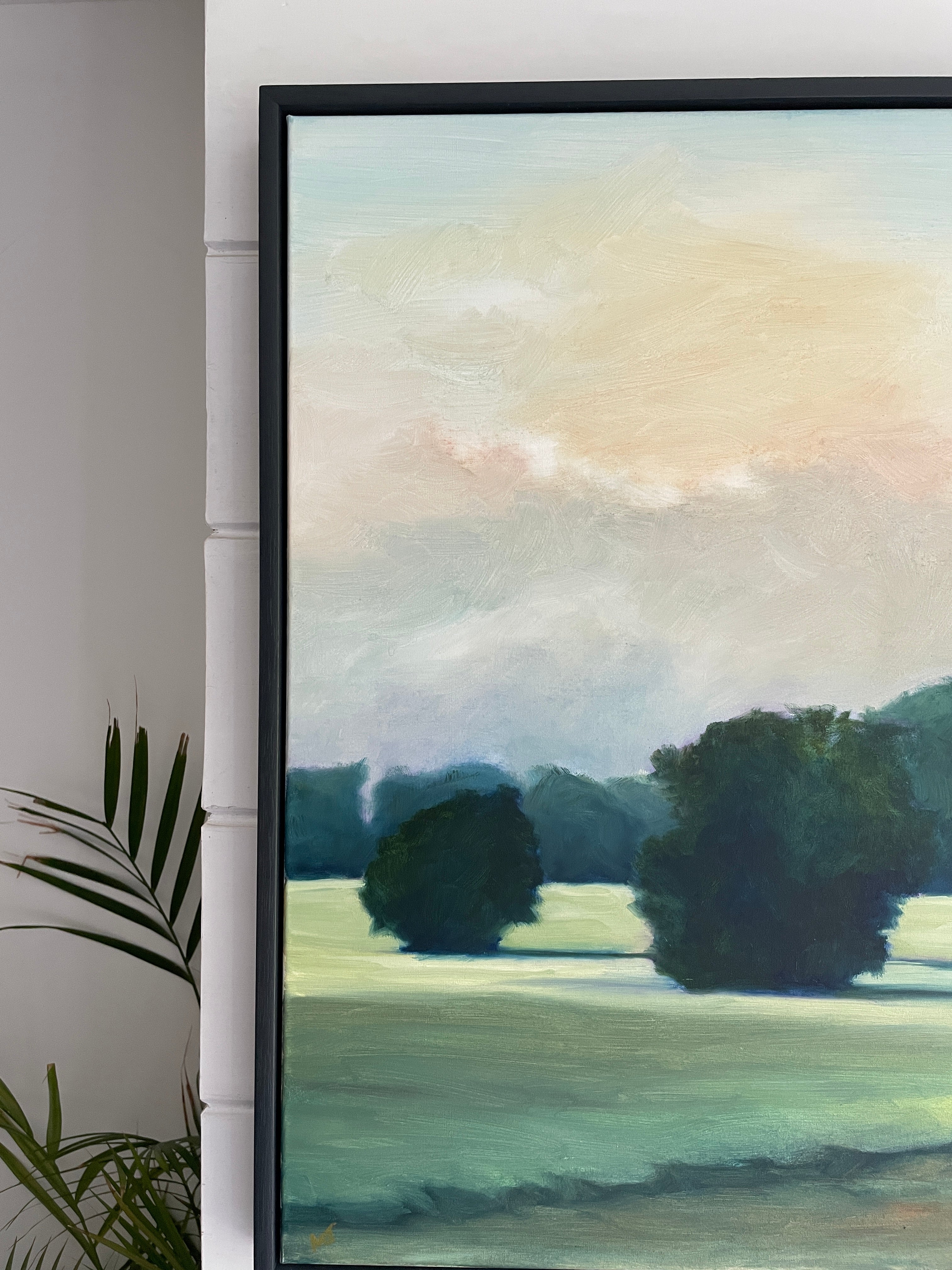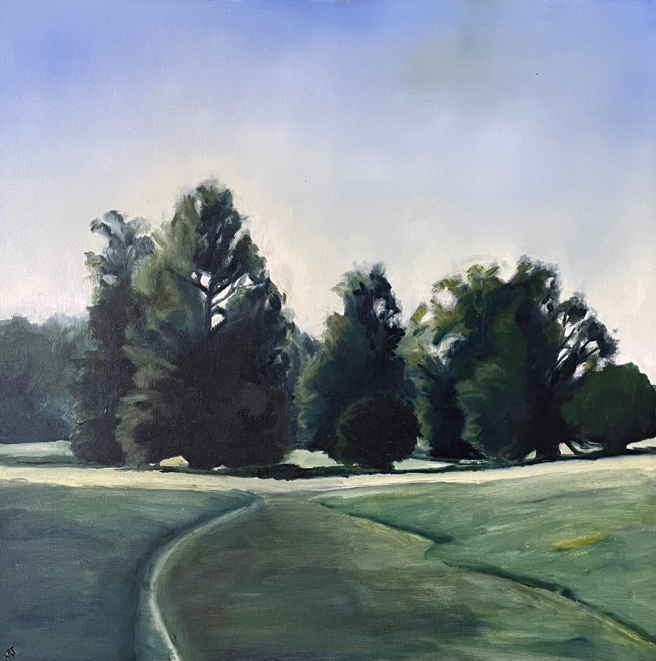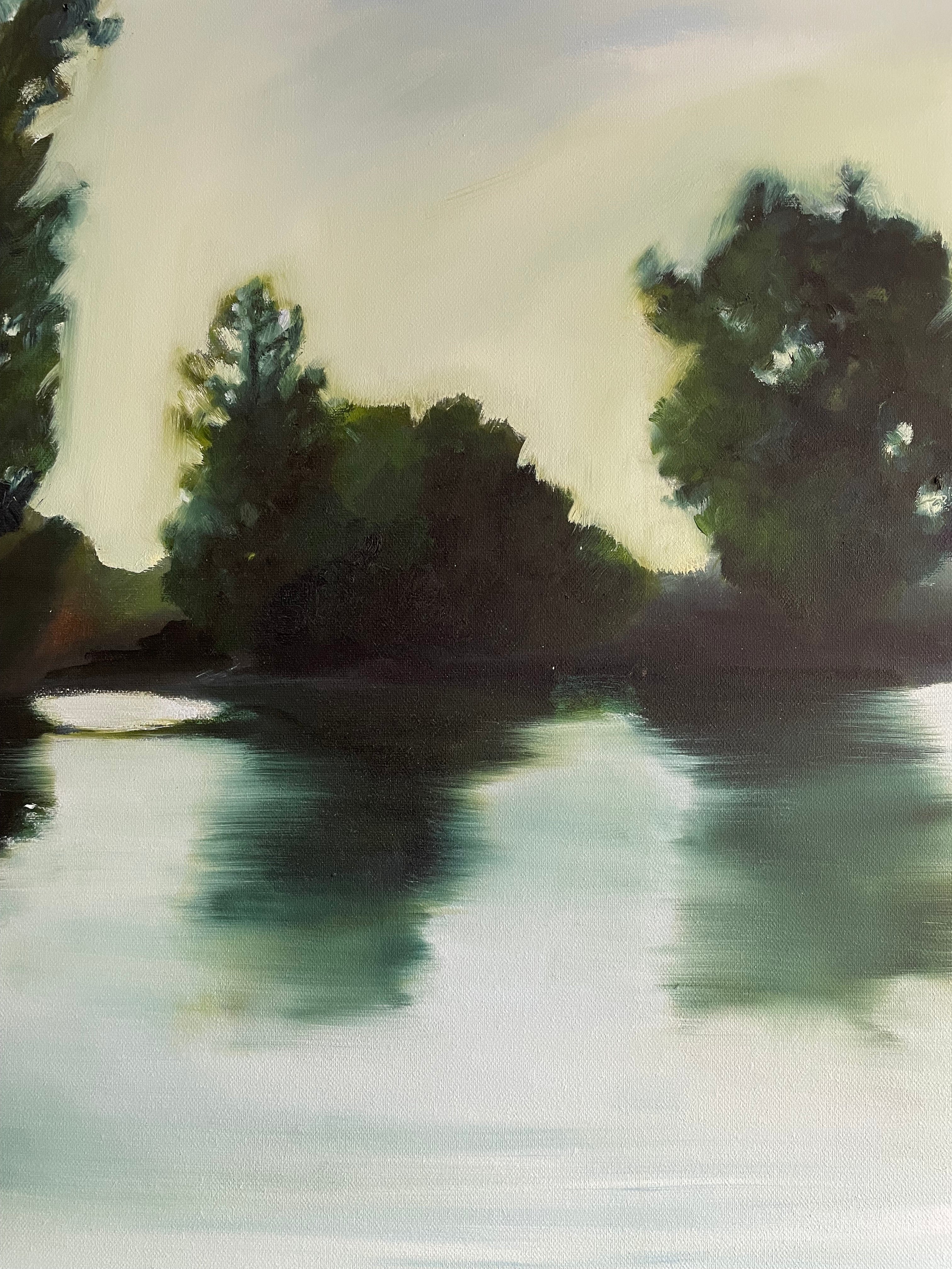 Madeleine initially captures the sense of place in a landscape through traditional techniques en plein air on small board, in oil. On returning to her studio, on the Essex / Suffolk border, she creates large scale canvases that aim to give the viewer a moment of calm and solitude and a sense of living in the landscape.